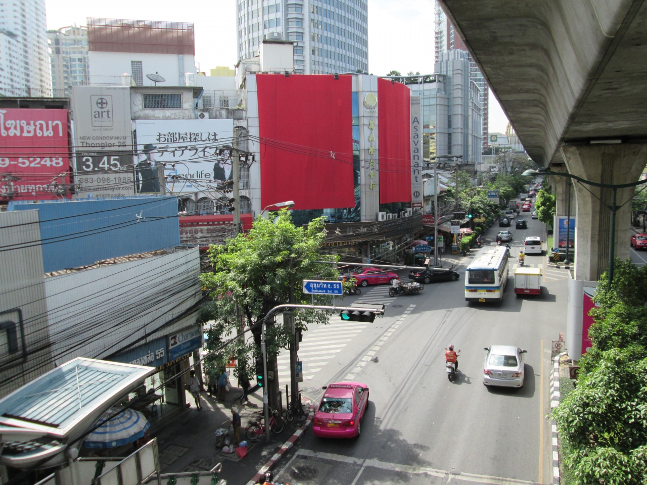 日本人駐在員が多く住む街です。日本食レストランがあり、駅周辺の広告看板には日本語の文字があります。ホテルは隣のプロンポン、アソーク界隈の方が多くあります。マッサージ店などはプロンポン、アソーク界隈よりは物価安に感じました。