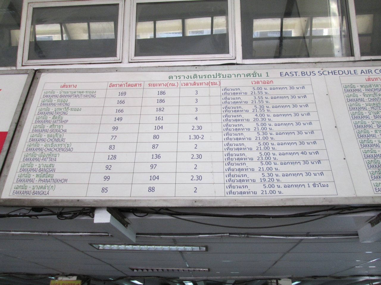 BTSエッカマイ駅を降りてすぐのところに東ターミナルのバスセンターがあります。パタヤ行きをはじめとする地方都市へ行ける長距離バスが発着しています。タイ人だけでなく、外国人旅行者をターミナルでは見かけ、初心者でも使えると思います。