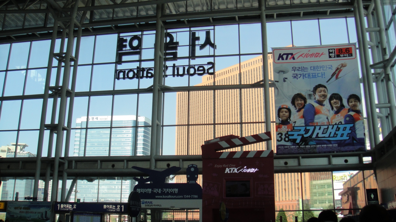 釜山など遠距離移動の際に使いました。KTXのほかローカル線も発着しています。駅ビルには店舗も入っていて買い物も事欠かないほか、駅の西側からは仁川空港行きのリムジンバスも出ていました。広い東西自由通路には車の展示なども行われていました。凄い人混みで切符売り場は長蛇の列でした。ちなみに売り場では日本語でも何とか対応してもらえました。