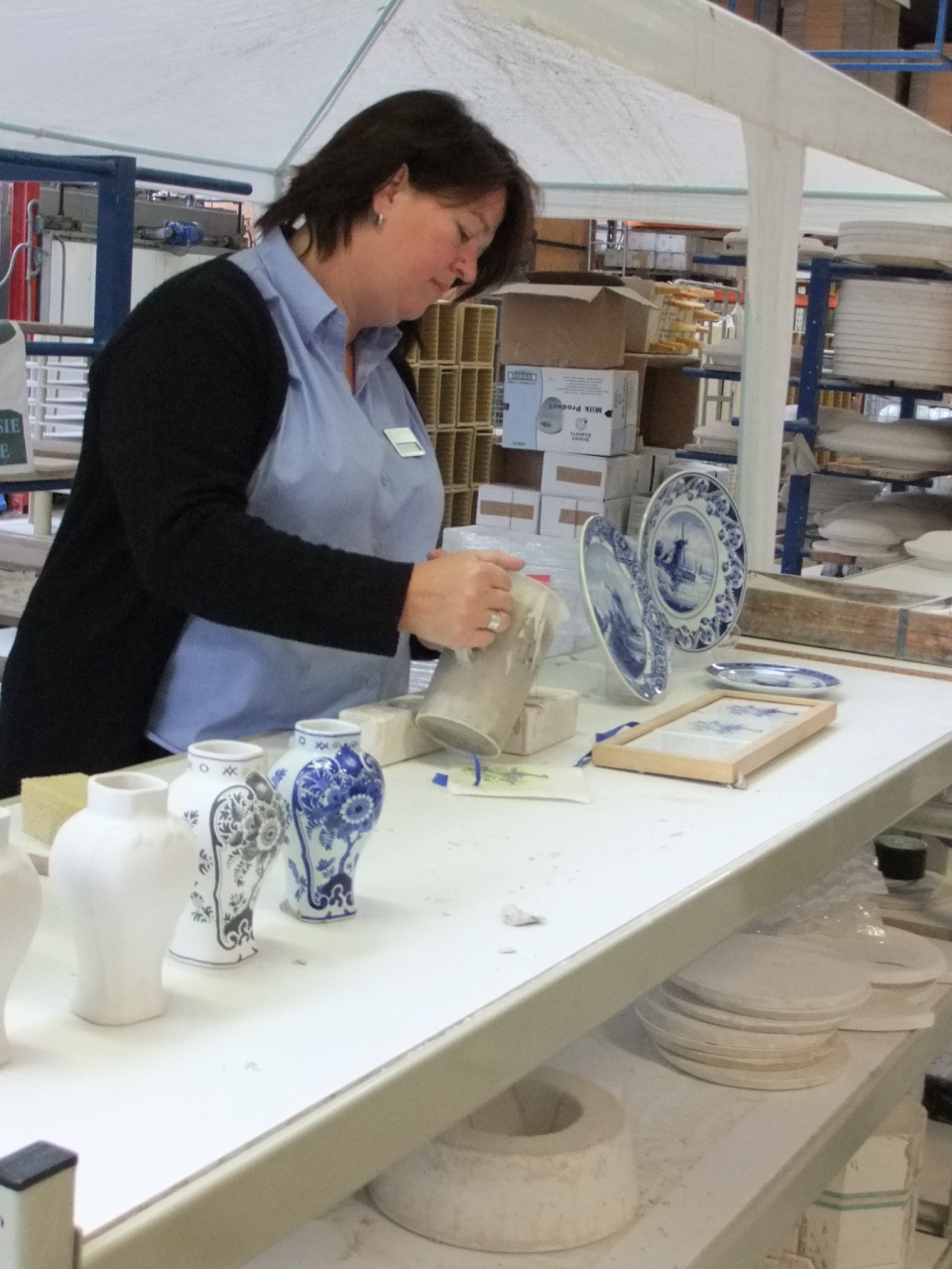 青(ブルー)が、自然にあまり無い色なので、昔は青いものは、貴重なものであった。ロイヤルデルフトに、有名なデルフト焼きの歴史、その変遷、展示品もある。ワークショップもあり、自分で花瓶も作られる(焼く時間がかかるが、できたものをエアメールで発送可能。)。芸術に対する興味を持っている人が、その体験を参加するほうがいい。売り場に、さまざまな記念品を売り、その中にミッフィーの関連商品もたくさんある。