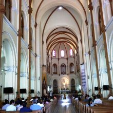 建物の奥はかなり広く、ステンドグラスがとても綺麗です。