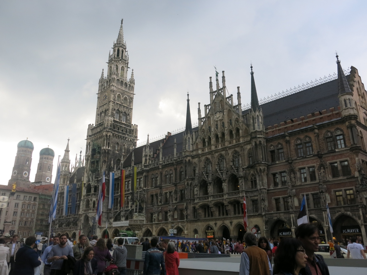 市庁舎の前に広がるマリエン広場、人通りが絶えません。噴水前では多くの人が記念撮影をしています。日本人と分かってか立て続けに、三組に写真を頼まれました。イタリア人、スペイン人、ロシア人。噴水と市庁舎が入るアングルが皆さん、お気に入りのようです。