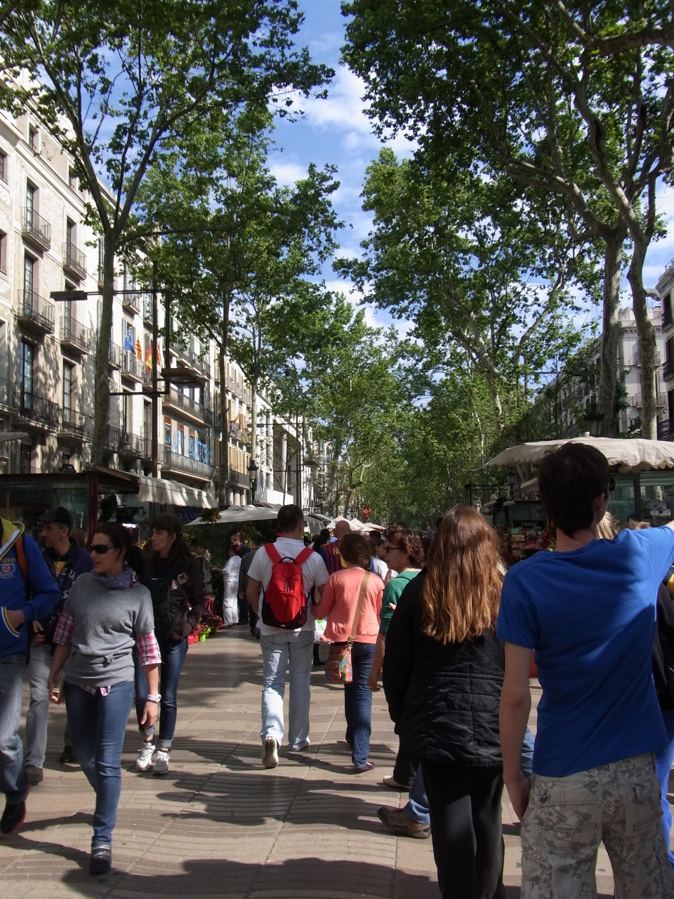 バルセロナで最も賑わう通り。道端の露天商や大道芸人を見ながらふらふら歩くだけでも楽しいです。