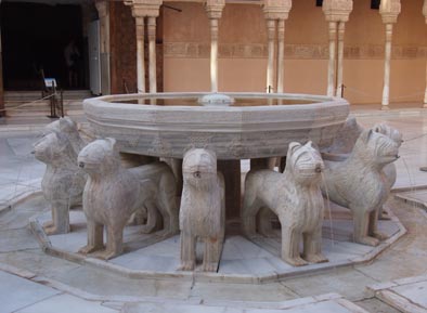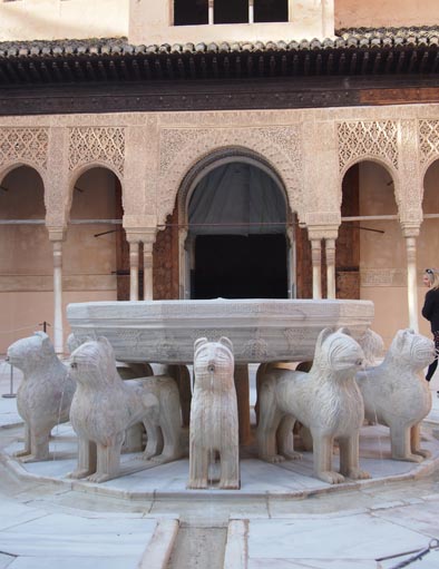 あまりにも有名でアルハンブラ宮殿のシンボルになっています。修復中の時もあったようですが今はちゃんと公開されていました。12頭のライオンの口から流れる水は四方の部屋へ注ぎます。百獣の王ライオンが支える噴水を眺めながら歴代の王たちは支配者たる自分を再認識していたのでしょうか?