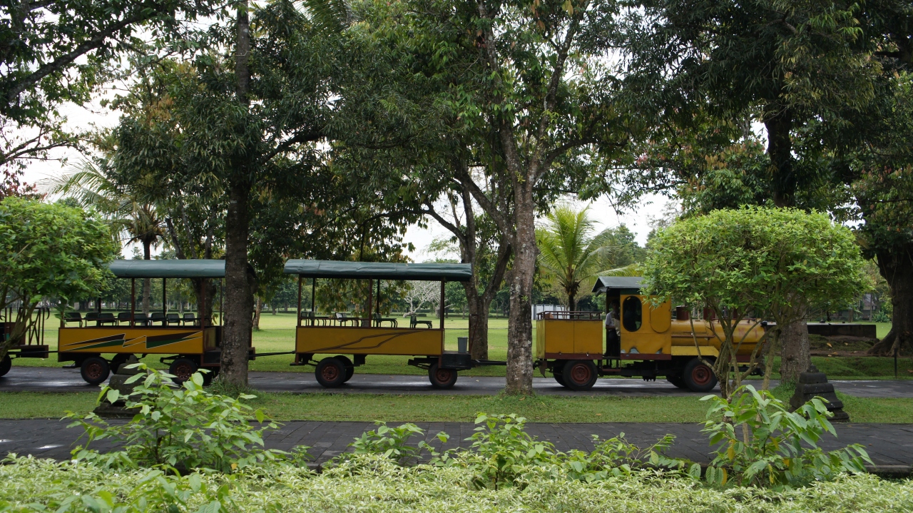 マノハラホテルに1泊しました。昼過ぎにジョグジャを出て3時前には到着。宿泊費に公園の入場料が含まれているので早速公園を散策。翌日は早朝のサンライズツアーに参加した後部屋で一休み。夕方の出発まで遺跡を見たり、ミニトレインに乗ったり公園を楽しみました。ミニトレインは7,500ルピアで1周15分くらいで公園を廻ります。ミネラルウォーターが1本おまけで付きますが、10人以上人が集まらないと運行しないので切符も集まらないと売ってくれません。風を切って公園を走るので気持ち良かったです。この公園には象を飼っていてこれにも乗れます。ミニトレイン乗り場の前が象乗り場ですが、約10分で50,000ルピアと格安です。午後3時から昼休みになってしまうのでそれまでに乗る方が良いでしょう。綺麗な公園なので気持ち良いです。レンタルの自転車もありましたが乗る気にならなかったので金額は調べていませんが安いでしょう。更に博物館もあり遺跡の出土品が数多く展示されています。4面の仏陀像の手の組み方の模型や石組みをし直した時の番号の振り方など興味深い展示品が数多くありましたので遺跡だけでは無く公園も見学してほしいと思いました。