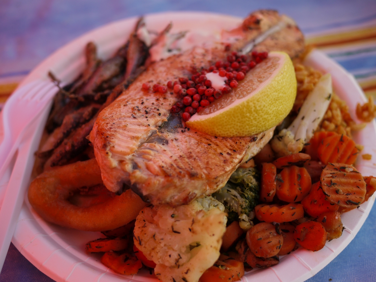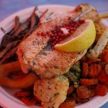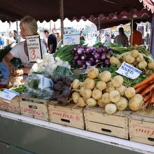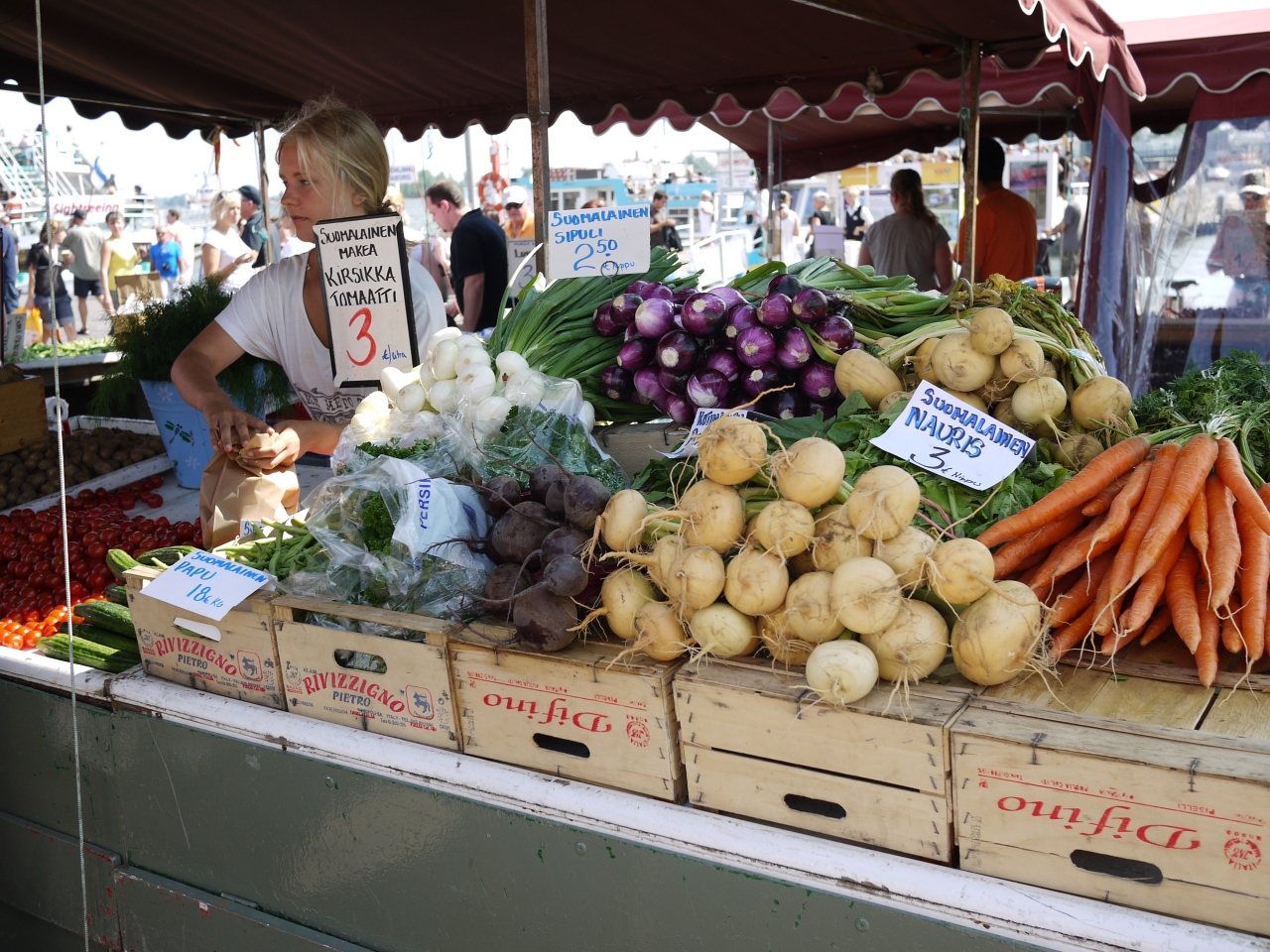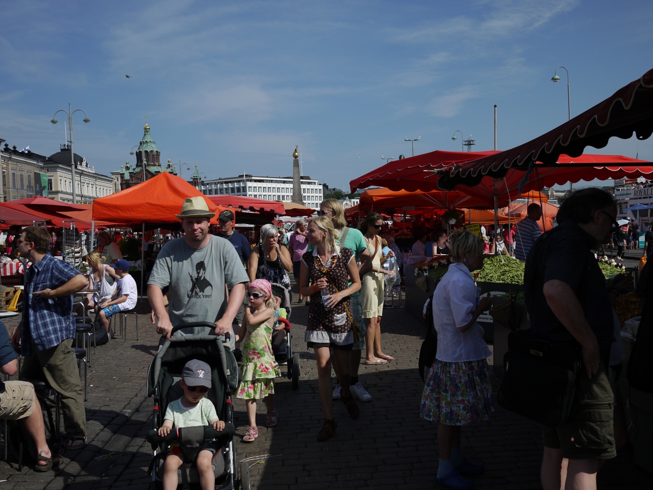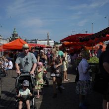 港のそばにある市場です。赤いテント屋根が気分を盛り上げます。売られている色とりどりの花や野菜は眺めるだけで楽しい。お土産屋さんもたくさんあります。いくつかの屋台があったので、食事をしました。サーモンに、ディル、ピンクペッパーがフィンランドの香り。かもめもたくさん飛んでいます。