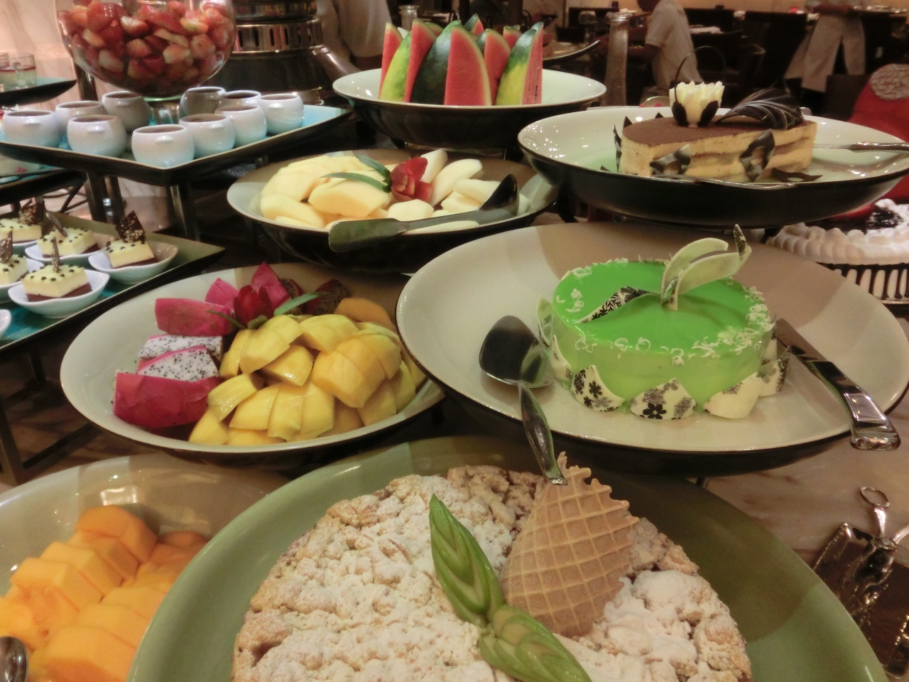 食材をお皿に取って係員に渡す際に調理方法を伝えると調理してを席まで持ってきてくれます。どの料理も美味しかったです。圧巻なのはデザート。ケーキ類は豊富です。