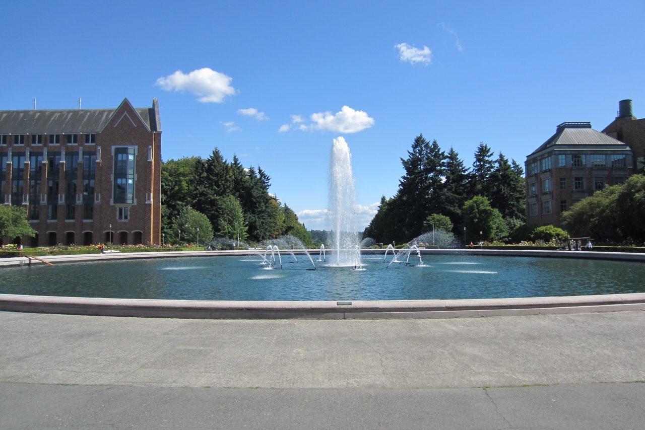 そのキャンパスはとにかく広いです。どーんと噴水もあるし、キャンパス内の移動にバスがあるくらいですから。