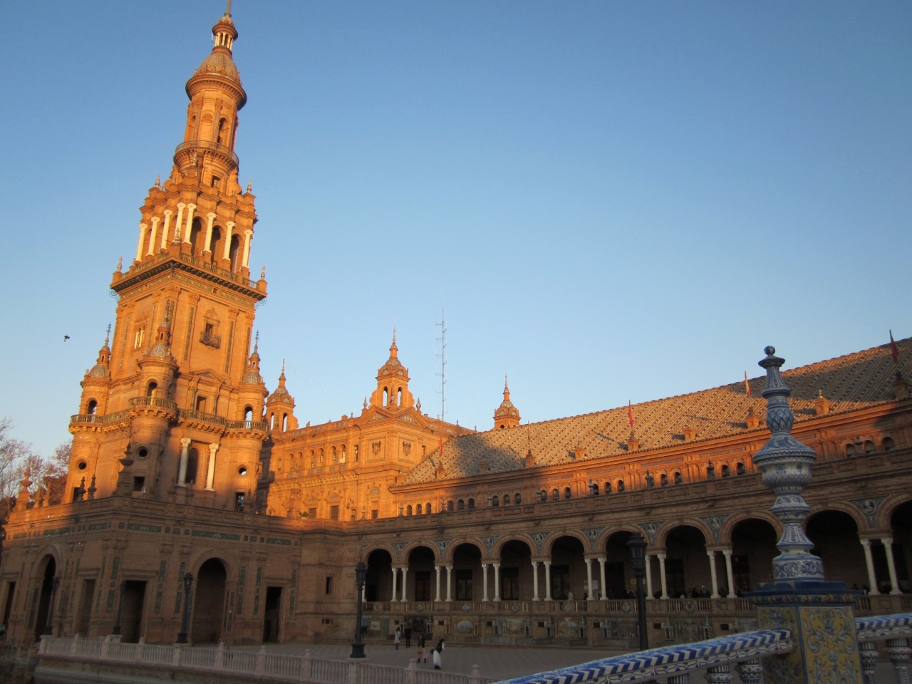 スペイン万博の時に建てられたパビリオンだそうですが、伝統様式を重んじて建てた建築で素晴らしかったです。スペインの地域ごとにタイルの絵があり見ごたえじゅうぶんです。早朝に見学に訪れたので、太陽がタイルを照らしていくのがとても幻想的で良かったです。