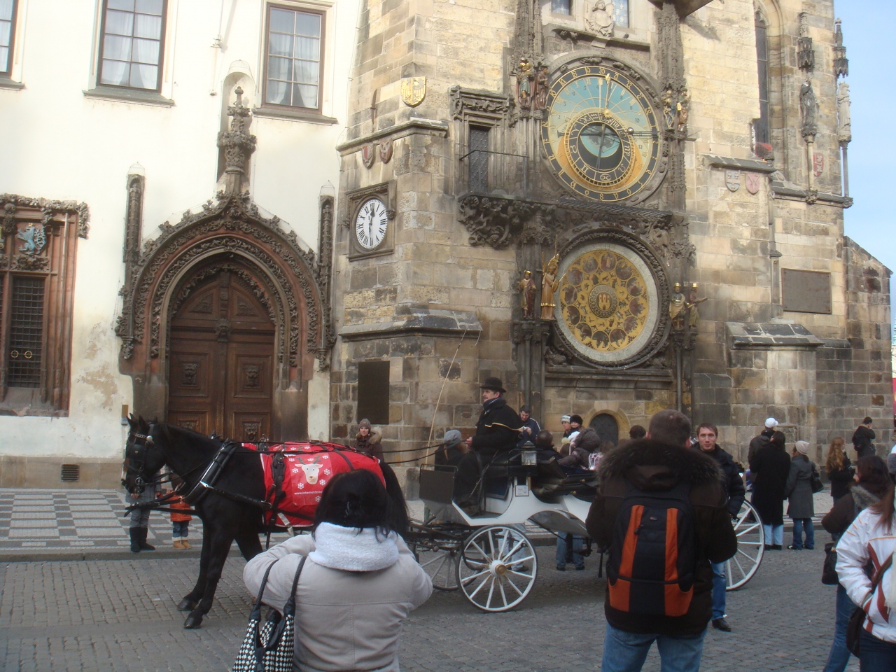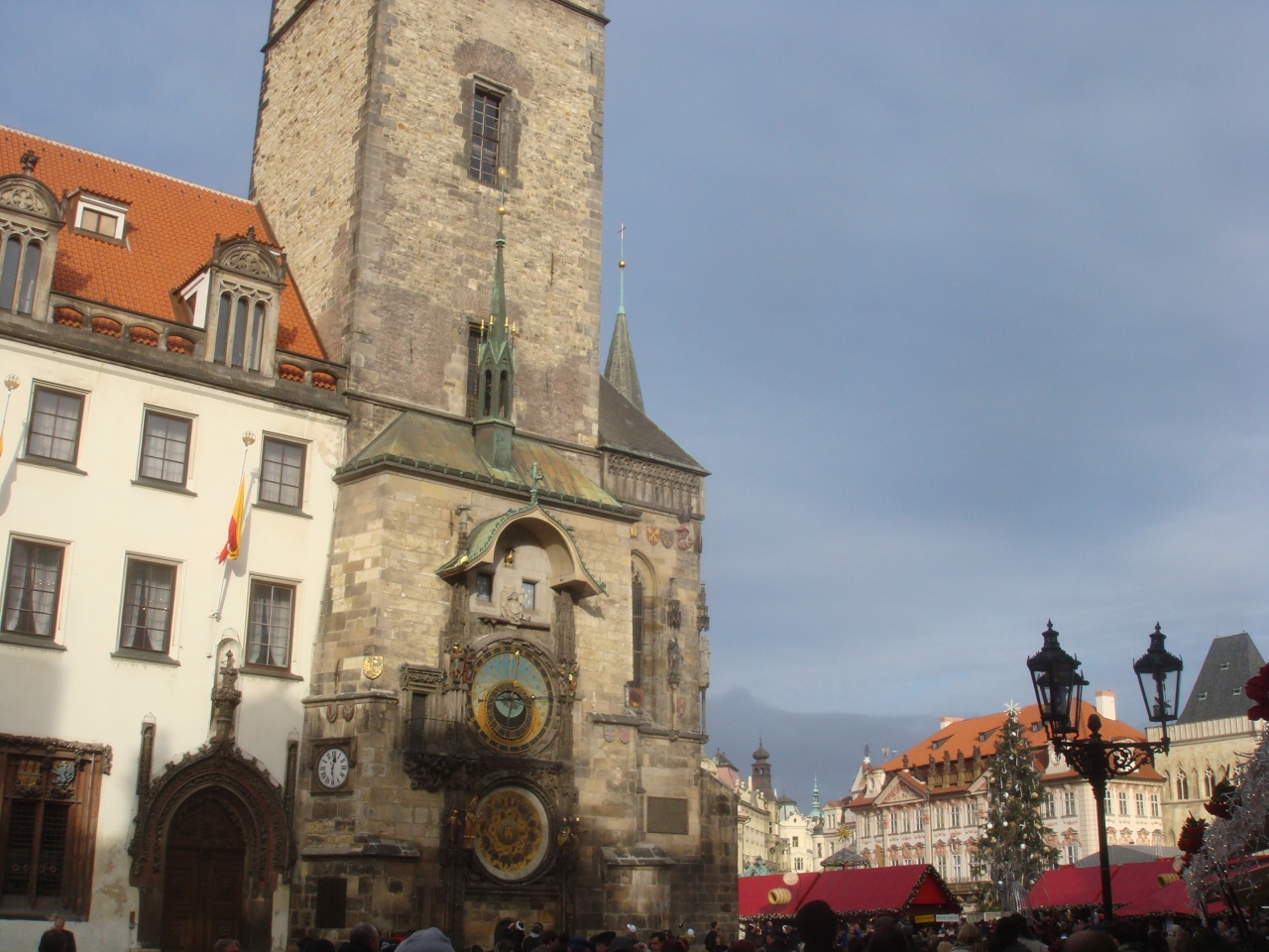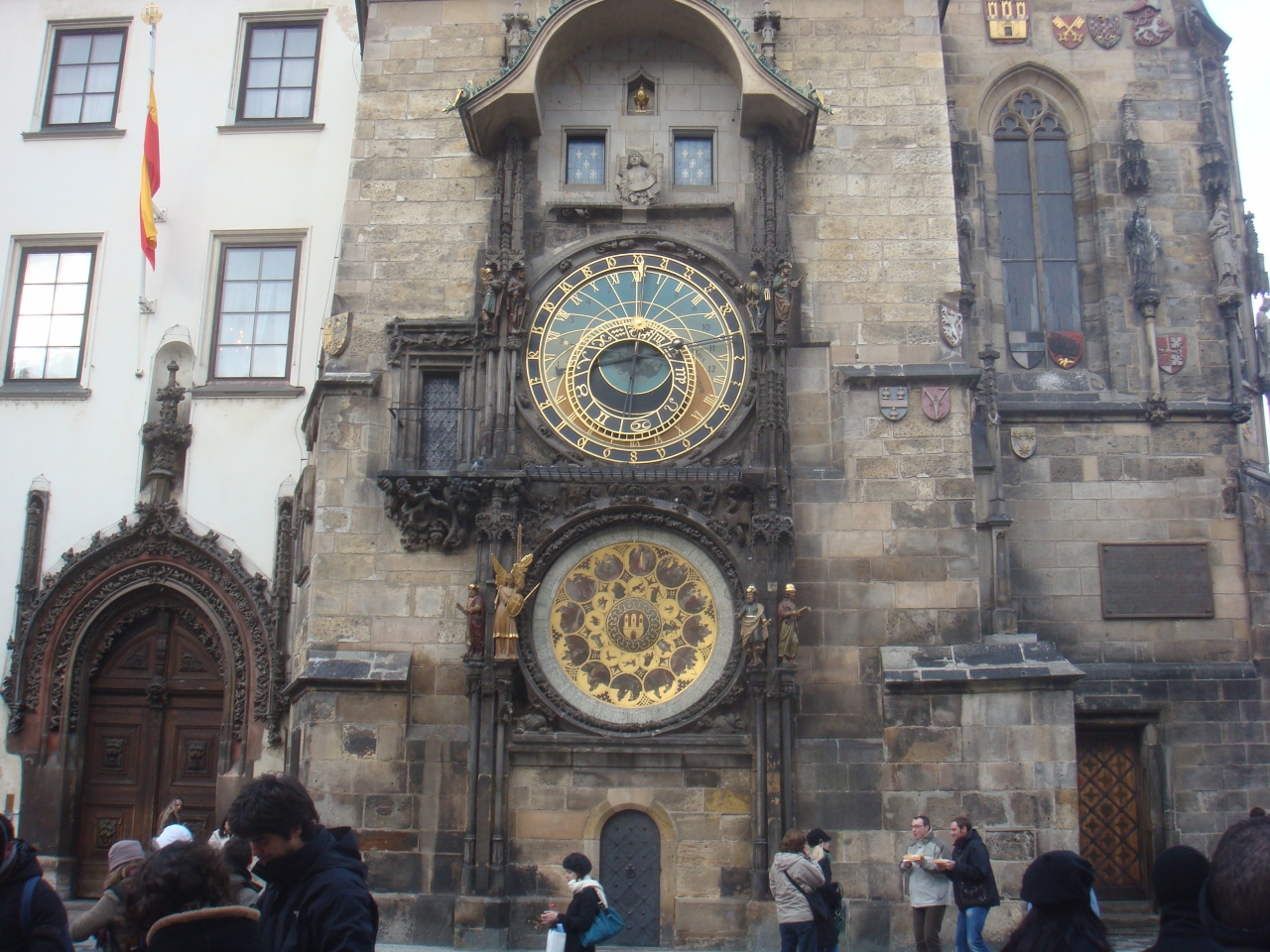 旧市街広場の一角にあります。毎正時、からくりが動いて時を告げるのですが、いまいち貧弱な感じです。最後の鶏の鳴き声が"残念でした"と言っているようです(あまりにあっけないので、まだ続きがあるのかと思ったのですが鳴き声で終わりでした)。有名な天文時計ですから、行くまでに期待を膨らませ過ぎたのでしょうか。プラハの前にミュンヘンに寄ったのですが、新市庁舎の仕掛け時計の方が数倍良かったです(ただ、こちらは高い所にあるので向かいのペーター教会の塔から見るとよいかも)。