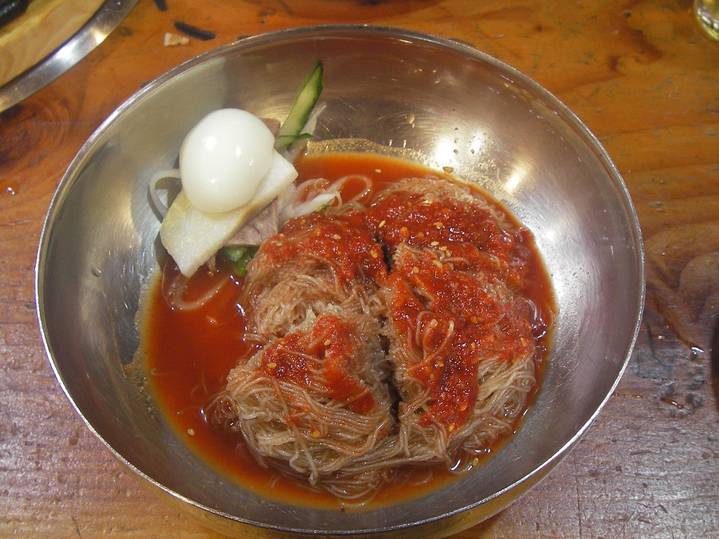 大型焼肉店ですが、清渓川を散歩した後、ゆったりランチをしました。韓国の伝統家屋を模倣したお店でゆったりとしています。まずは冷たいビールと一緒に海鮮チジミをいただき、〆はビビンレーメン。ちょっと甘めの真っ赤なタレがおいしかったです。