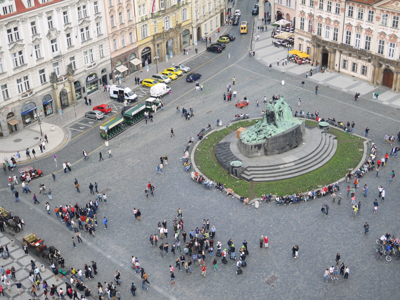 ツアー観光で訪問。多くの観光客でごった返す。ヨーロッパの都市が広場から始まったのがここでもよくわかる。広場には宗教改革の先駆者「ヤン・フス」の像が立っている。チェコでは敬愛され 特別の存在であるみたい。塔の上に登ればよく見える。