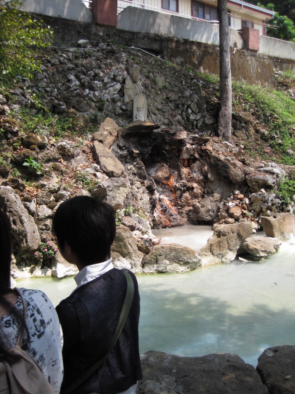 アクセスは悪いですよ。台南駅付近からバスで1時間以上かかります。山の上にのぼったかと思うと、突然駐車場。駐車場から少しだけ歩いて、食堂を横目に行くと、火水同源があります。水と火がある不思議なものを見ることができます。