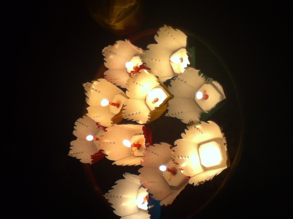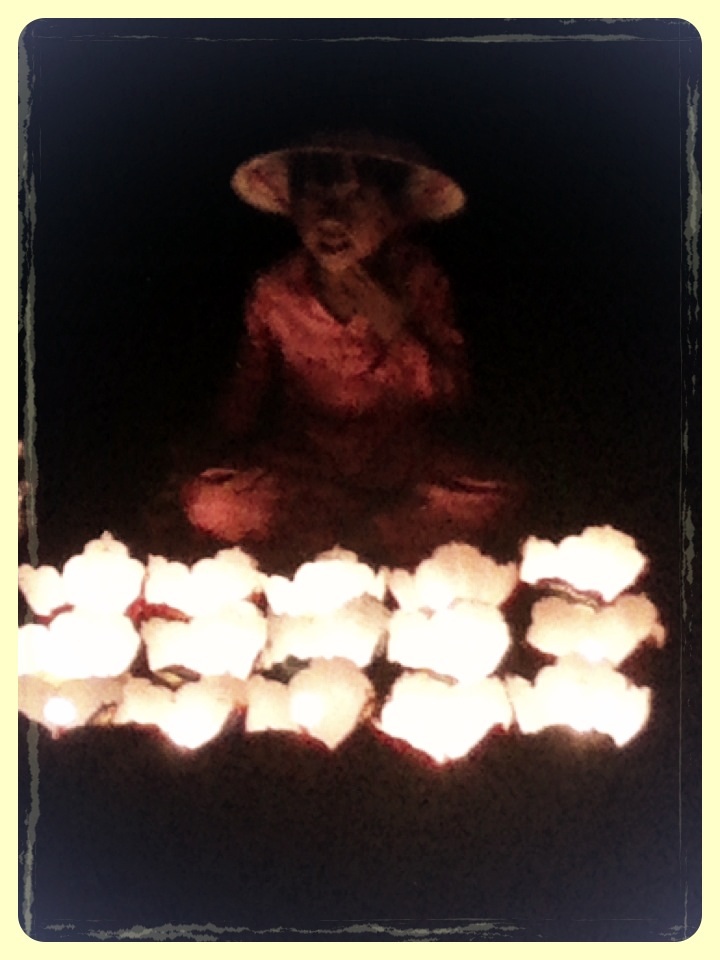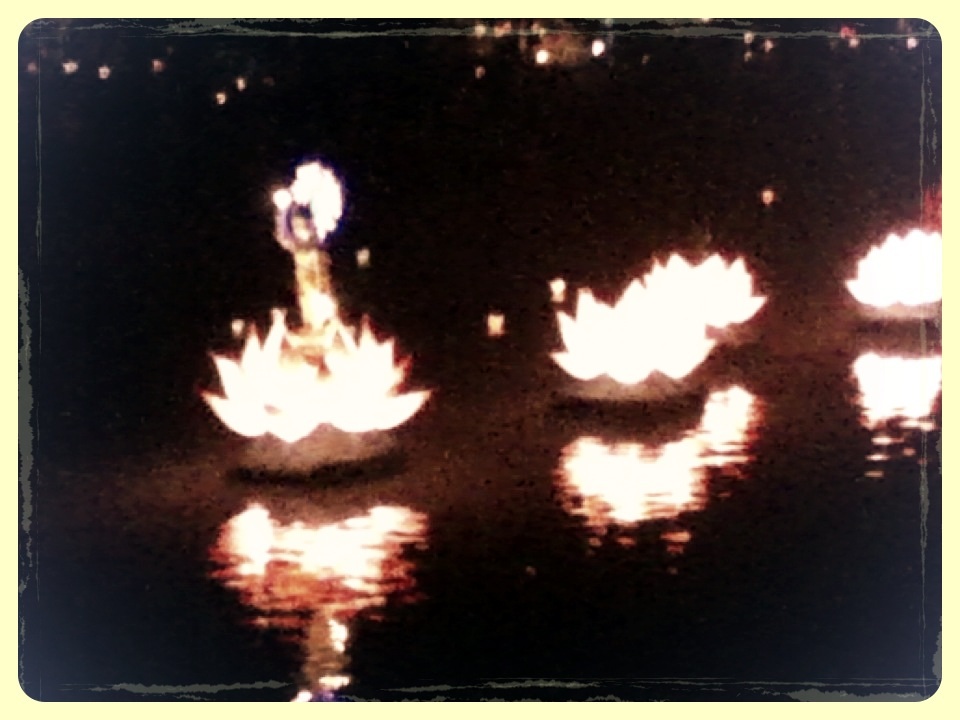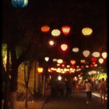 日が暮れた頃バクダン通りの店は外部の照明を落とし、薄暗くなったトゥボン川沿いにランタン売りが並ぶ。火を灯したランタンを川に浮かべると下流へとユラユラ流れていく。