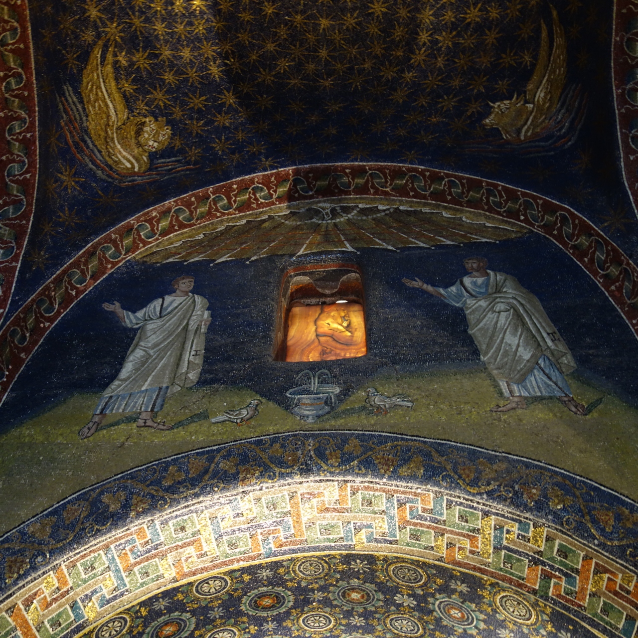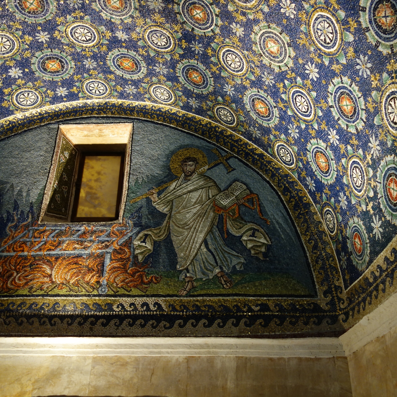 mausoleo di Galla Placidia は小さな小屋のようなところです。その中に一歩はいると,そこはまったく別世界。キリスト教の「彼岸」とも表現できるでしょうか。生真面目な精神世界が表現されています。