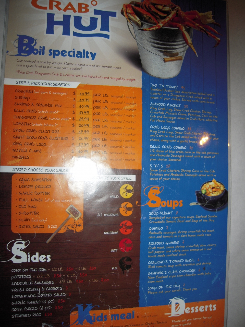 Crab Hut sea food gumbo$7, seafood bucket $55/2人==>行った。良かった。