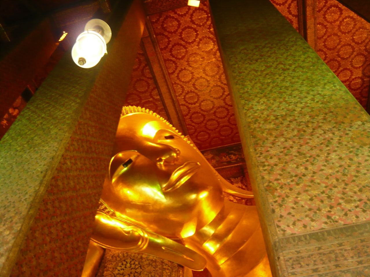 ぽかんとしてしまうほどの迫力ある巨大な黄金寝釈迦仏が有名。