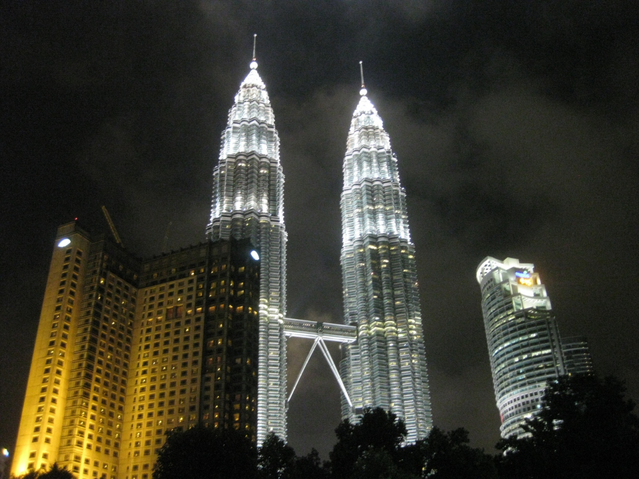 ツインタワーの下層階には伊勢丹や紀伊國屋書店なども入居する「スリアKLCCショッピングセンター」で、日本人観光客も多い場所です。41階には2棟のタワーをつなぐスカイウォーク、86階には展望台などありますが、高所恐怖症気味の私には縁がありません。タワーの外に出れば、そこは良く整備された広大なKLCC公園、周囲には高級ホテルなどが林立し、外国人観光客にもとても人気の場所です。さて肝心のツインタワー外観ですが、昼間は太陽の光を受けてキラキラと輝き、それはそれで綺麗です。ただ、やっぱり夜のライトアップされたタワーには敵いません。夜の闇に浮かび上がる幻想的なツインタワーの姿は、もう何と表現したら良いのでしょうか…。文字で表わすことは難しいのですが…「余りの美しく幻想的な姿に、その場を去り難し」という感じになること請け合いです。まぁ、一度見に行って下さい。