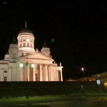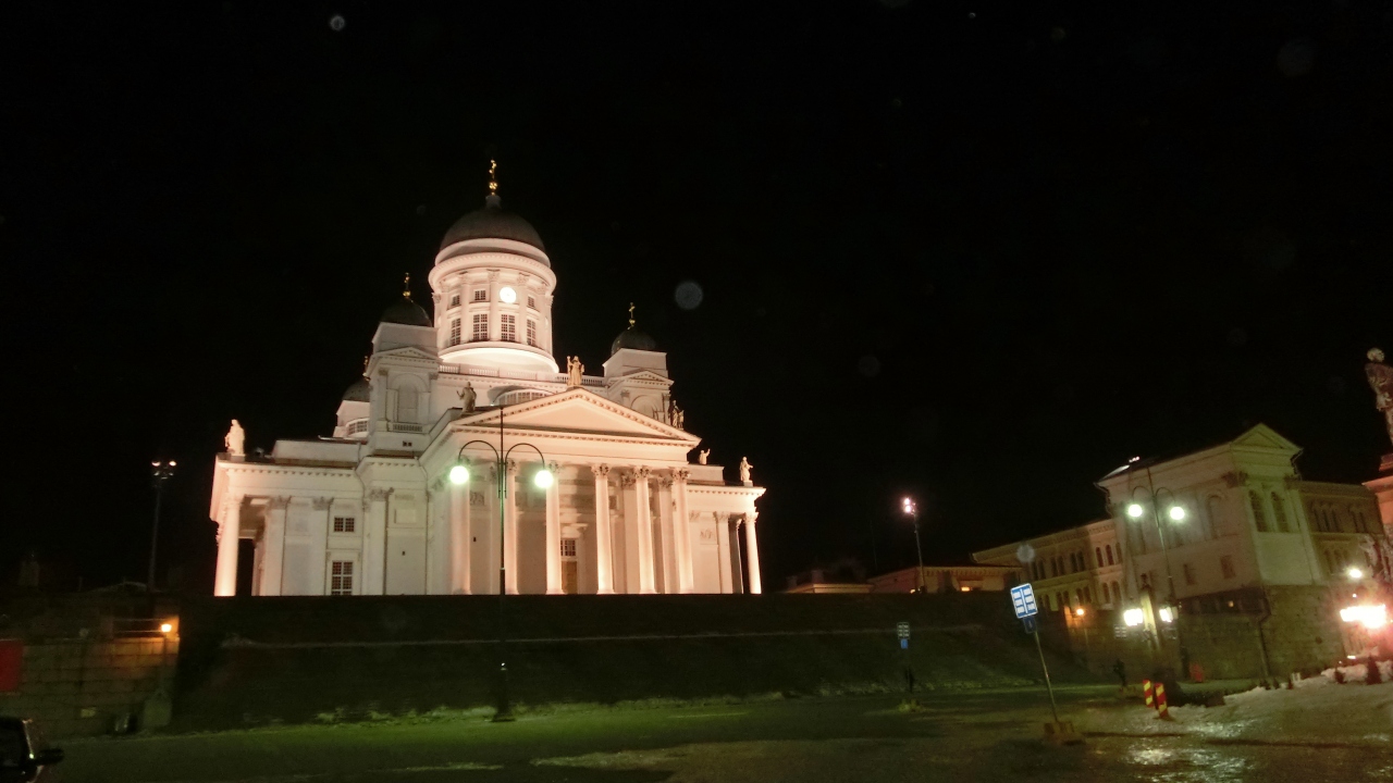 フィンランドのショッピングは比較的早めに閉まってしまうので、ショッピングが終わった後に暗くなってから観光名所を周りました。そのうちの一つがヘルシンキ大聖堂。ライトアップして綺麗です。中心地から歩いていくことができます。治安の良いヘルシンキでは夜の待ち歩きも怖いことはありませんでしたので、食事の後にでもライトアップした美しい白を見に行かれるのも良いかと思います。