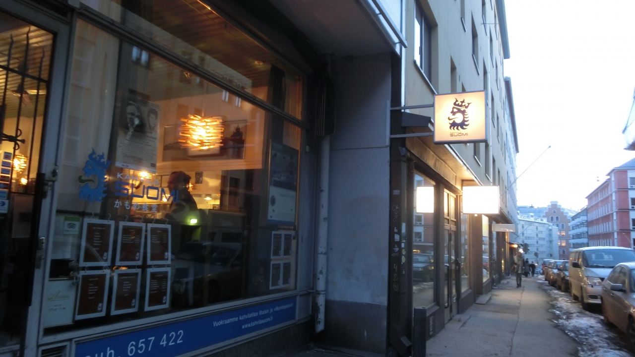 トラムの駅からも少しだけ歩きます。少しわかりづらいかもしれません。入り口には日本語でかもめ食堂と書いてありますが、お店の方は日本人は居ません。店内は日本人率が高く、あまりフィンランドでは日本人に会わなかったので、ちょっとほっとするひと時でした。オーダーはレジで先に注文して、好きな席に座り、サラダやコーヒー、スープなどは自由に食べることができます。レストランの形をしていますがファーストフード方式です。