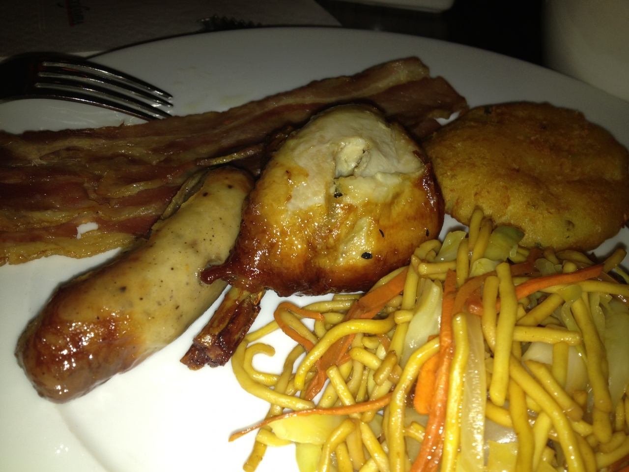 ベネチアンの中にある、ブラジル料理のお店です。朝食に利用しました。美味しかったですが、店の雰囲気もお料理も朝食向きではないかもしれません。店内も薄暗いですし。朝食はビュッフェで品数はそれほど多くありませんが、焼き立ての大きなソーセージやハム、チキンを串に刺したままの状態で、男性スタッフが各テーブルを回り、切り分けてくれます。かなりボリュームたっぷりです。