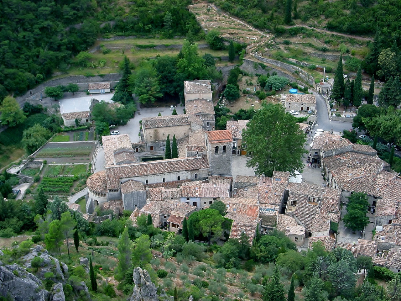 フランス・中央山岳地帯の、南の外れに位置する「フランスの美しい村」「サン・ギレム・ル・デゼール」の村の広場にあります、村は、「フランスの美しい村」の中でも、かなり人気の村なので、かなり辺鄙な場所ながら、観光客も、わりと多いです。