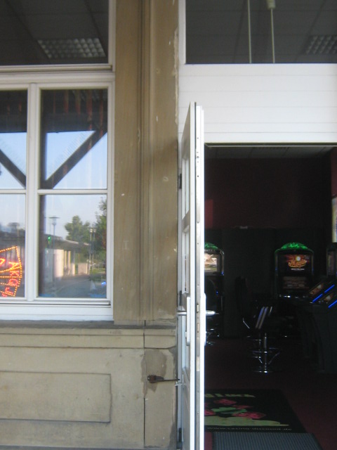 駅はこじんまりとしています。また、電車を降りて右側にカジノというかゲームセンターのような所があります。