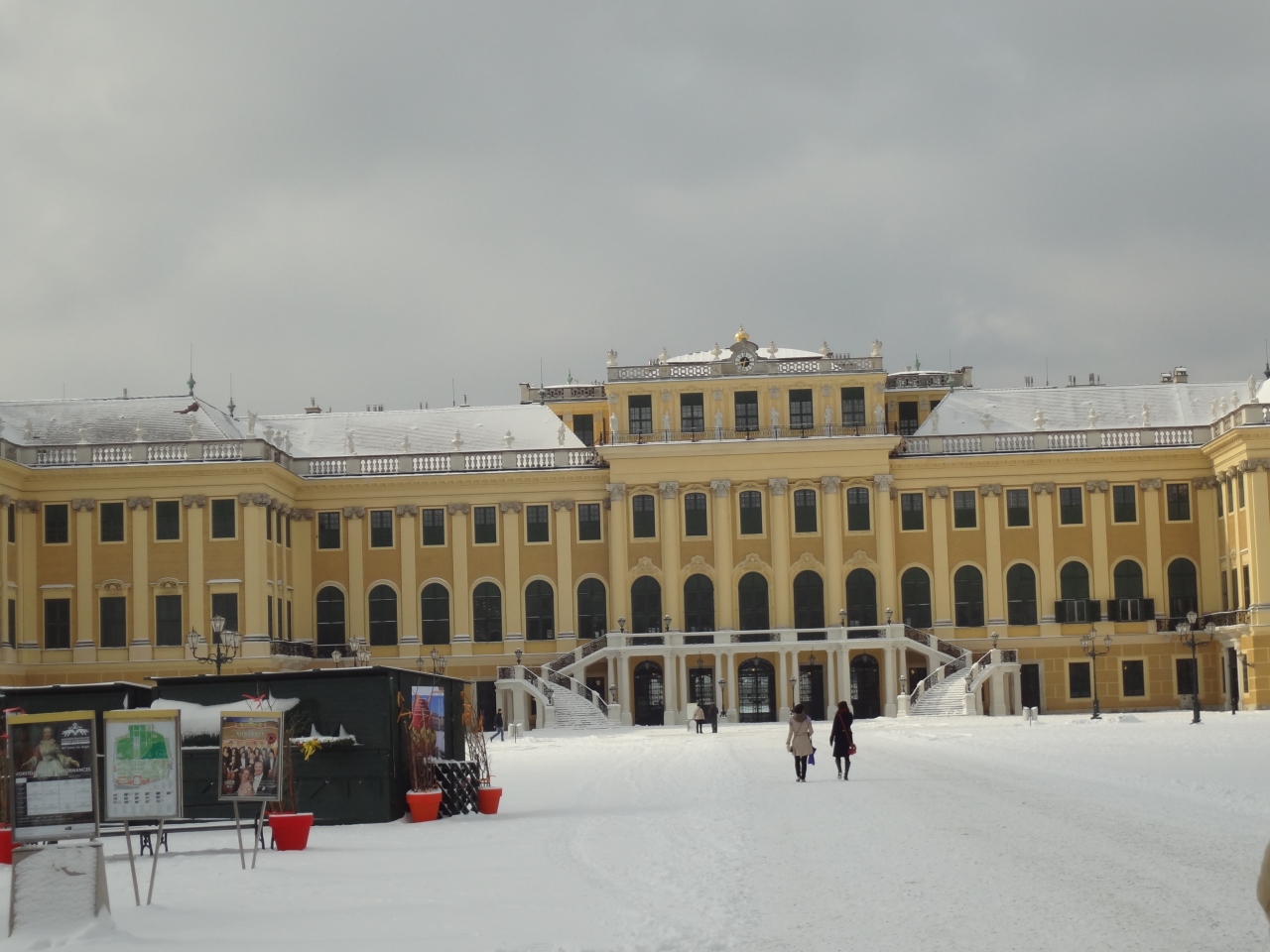 めったにないオーストリア、ウィーン市内、3月の雪に覆われたシェーンブルン宮殿