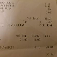 その後、ビュッフェ代も含めてお会計。ビュッフェ代金は8.5ドル位で時間制限無しの食べ放題。