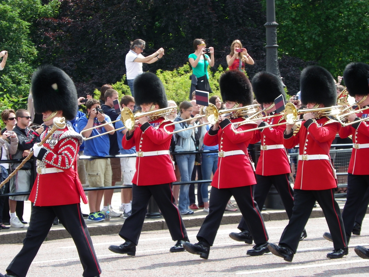 ロンドンに来た人は皆がバッキンガム宮殿の衛兵の交代を見ると思います。だからすごい人です。中々、よく見える場所を確保するのは大変です。早く行って場所を確保して、目の前を通り過ぎるのは10秒くらいでしょうか?10秒のために何十分も待つのは時間の無駄ですかね。でもココは外せないですよね。