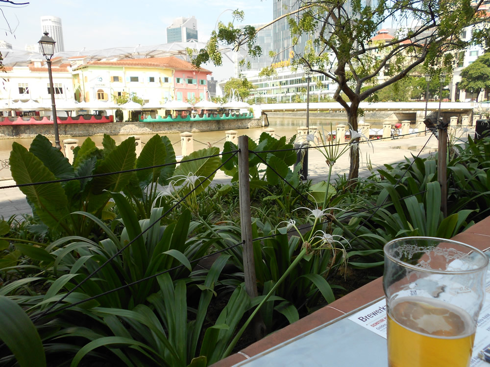 クラークキーのリバーサイドポイントの西端に位置する自家ピール工場のあるビアホール。自宅からすぐそばにあるので週末の土日はほぼ毎日通ってます。お薦めしたいのは昼食時のランチ・プロモーション。12時から3時までのランチメニューです。食べ物は1)Half a Sandwitch 2)9 inch BYO Pizza 3) Bar Burger の三つから選べて、添え物に1)Harbe-Garlic Flies 2)Sweet Potato Flies 3)Soup 4)Saladの四つから選びます。お値段はSGD19となりますが、これには500ccのビールが付いて来るのですからお買い得。ほとんどの種類の自家製ビールをいただきましたが、一番好きなのはピルスナーです。スッキリとほろ苦くて何杯でも飲んでしまいたくなります。オートミール・スタウトもじっくり飲むには最適。シンガポールリバーから流れて来る風、というのは特にありませんが開放感のある屋外席が指定席です。屋内ではスポーツ番組が流れているので、ビッグタイトルの試合の日は大きな歓声で盛り上がります。ちょっと困るのがビールの値段が夜になるにしたがってどんどん高くなるところ。ランチの時間帯の2倍にまで跳ね上がります。という訳でランチや昼下がりの憩いの時間を過ごすのに最高なビール屋さんです。