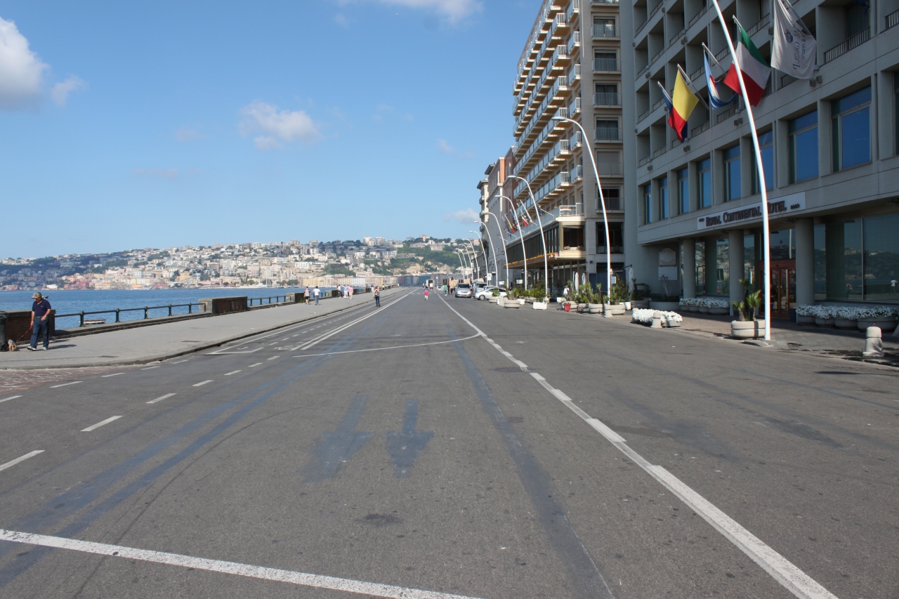 目の前の海の向こうにヴェスビオ山が見え、海岸線に沿って続く美しい散歩道。