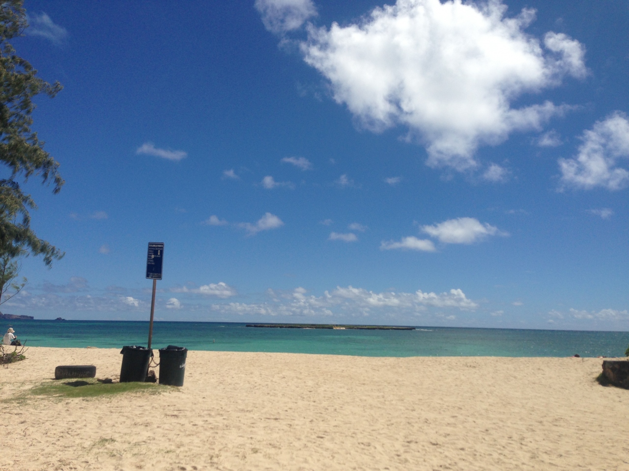 芝生の山の上に特等席のベンチがぽつんとおいてあったり、とてもかわいいビーチでした。