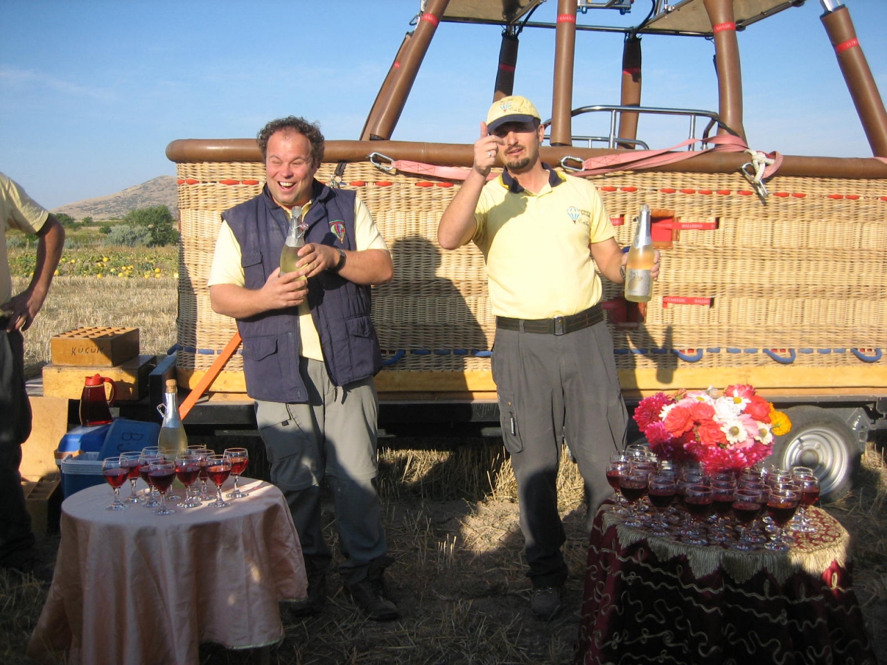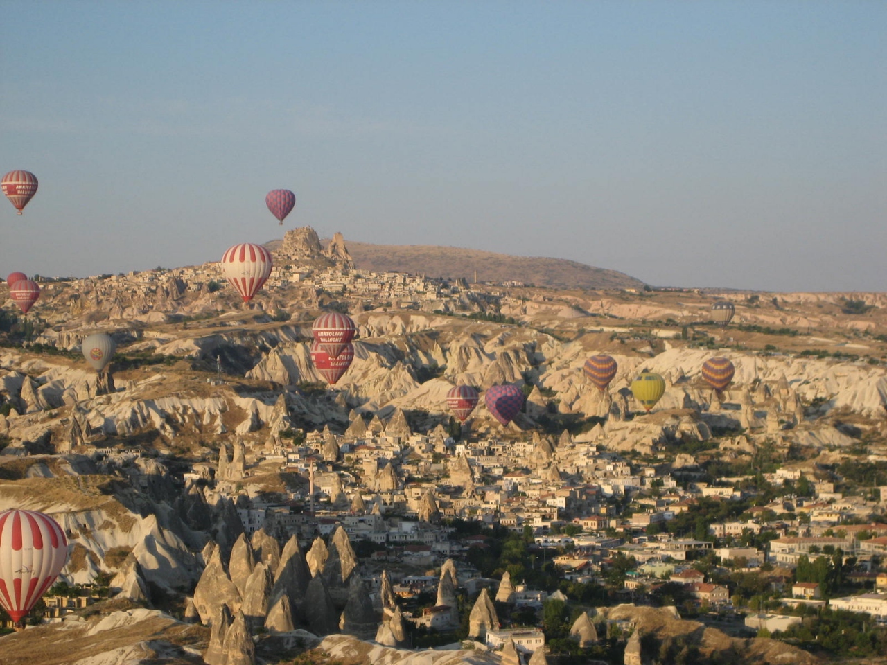 事務所に集合して乗り場まで案内され、バルーンを膨らませるところから見ることができる。20数人が乗り込める大きな籠だが、乗り込むのは少々大変。同行のお婆さんは係りの人にお姫様抱っこで乗せてもらった。景色の良いことももちろん、スピードがゆっくりであること、上下も操作可能で、カッパドキアの奇岩を間近で見られる。