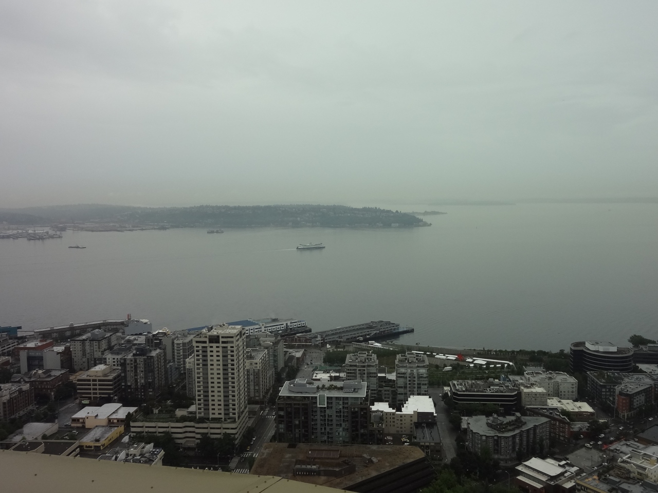 朝8時から9時半までは「Up Early」という割引があり、展望台入場料の通常$21が$18になりました。夕方6時以後も「Up Late」割引で$18になるそうです。私が行った日は残念ながら雨でしたが、ダウンタウンからピュージェットサウンドまでの景色を楽しむことができました。10年前に行ったときは晴れで、マウントレーニアまでが見えたのを懐かしく思い出しました。