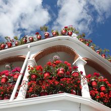 この通りを上り詰めて右に少し曲がると階段がある。そこで空を眺めるように見回せば花が溢れるばかりという表現がおかしくない家が見つかるはず。