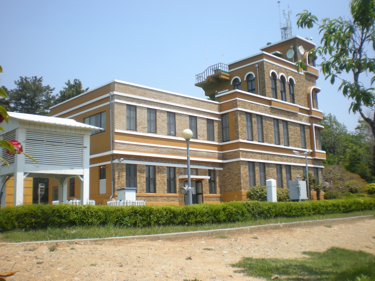 釜山地方気象台は釜山広域市の文化財に指定されています。残念ながら内部には入れませんが、中央洞から山側に登り、坂道を一踏ん張り。丘を登る表側からのアプローチと、同じく釜山市の文化財に登録されている配水地ポンプ場側からの裏からのアプローチがあります。小ぶりな建物ですが釜山タワーからも見る事が出来ます。釜山市内にはこの様な近代建築の文化財が数多く残されています。勿論、日本統治時代のものも多くありますが、じっくり見ていきますと昭和の香り漂うものもあります。また中央洞付近は日本家屋も残っています。よく見ていきますと、屋根形状が日本のものと判りますので、どうぞ探してみて下さい。