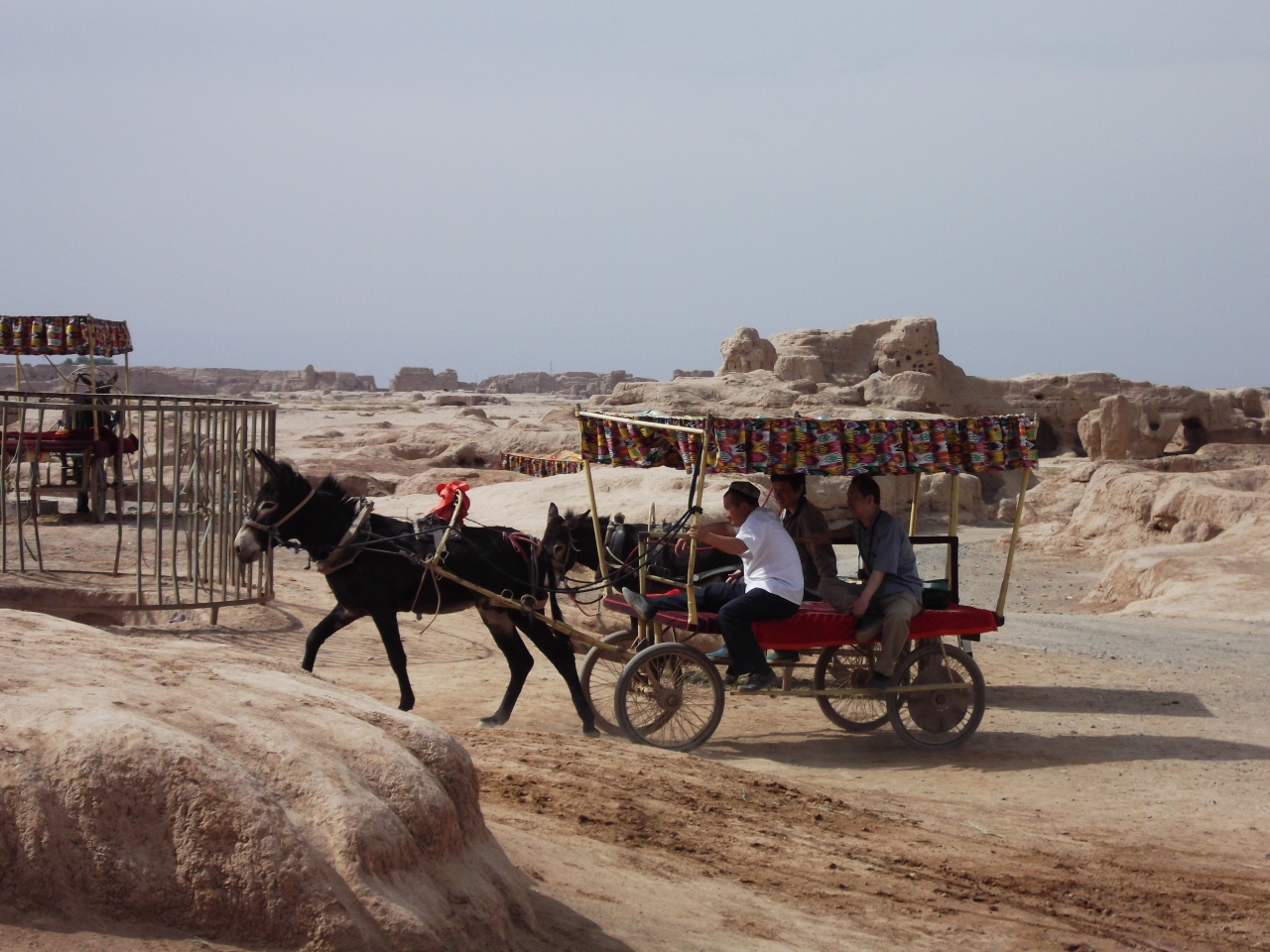 高昌故城は、トルファン市の南東にある麹氏高昌国の城跡。一辺が1.5kmの土壁で囲まれたほぼ正方形で、面積は200万?。明代まで約1500年間栄えました。玄奘三蔵が天竺へ向かう途中に1,2カ月程度滞在し、仏教を講じた寺院跡も残っています。