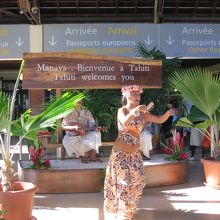 タヒチの玄関口であるファアア空港では、到着ロビーでタヒチの方が音楽を奏でながら、タヒチアンダンスを踊ってお出迎えしてくれます。