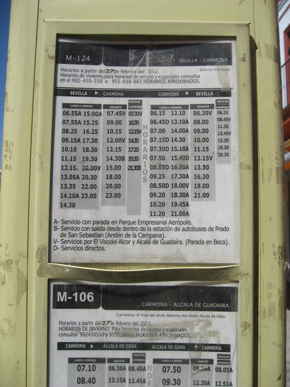 カルモナへのバスはサン・ベルナルド駅から出ている。サン・ベルナルド駅は地下鉄、路面電車、市内バス、郊外バスが接続しているターミナル。