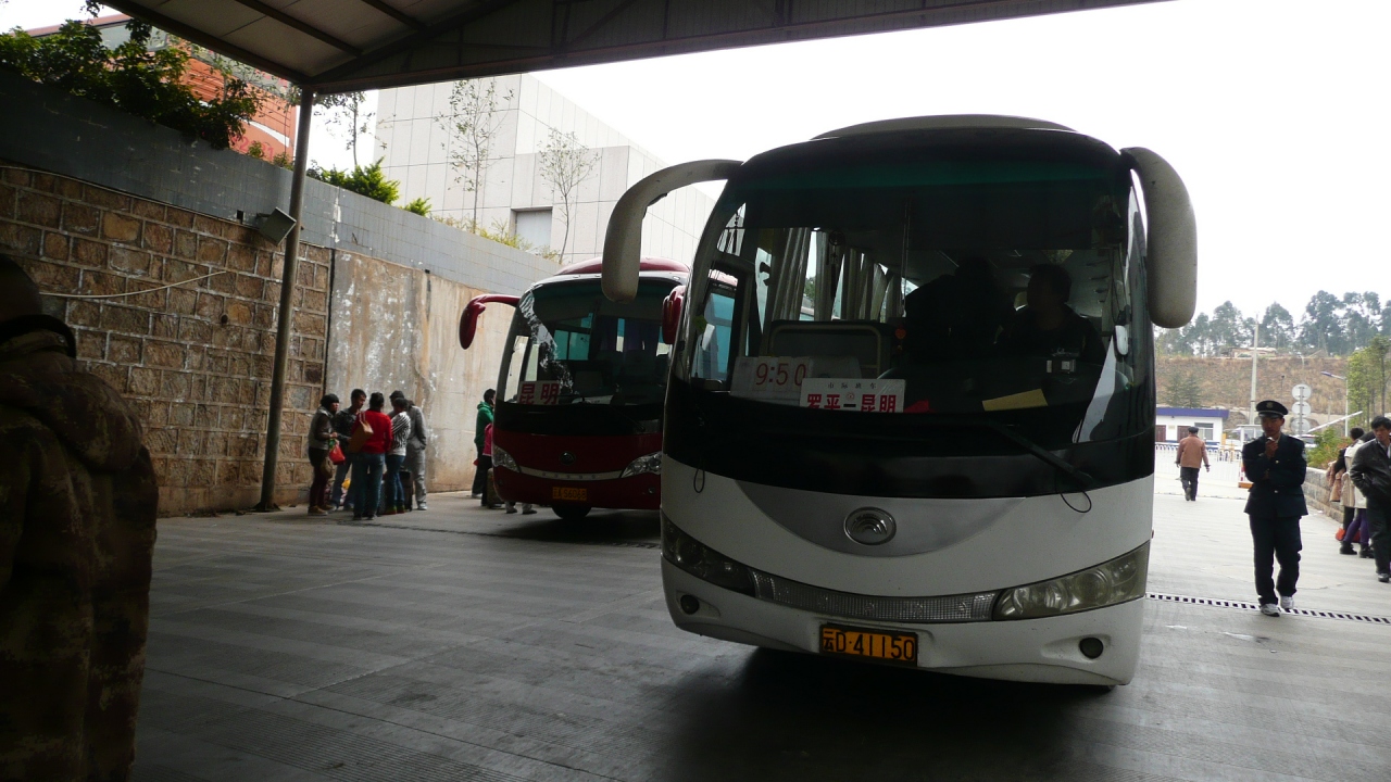 昆明から羅平まで列車で移動し、帰りは長距離バスを利用しました。バスはボロボロで運転手が居眠りしてるし怖かったけど、時間と費用の節約が出来て便利です。しかし予算と時間に余裕が有るならやはりエアーや列車で移動の方が安全かもしれません。