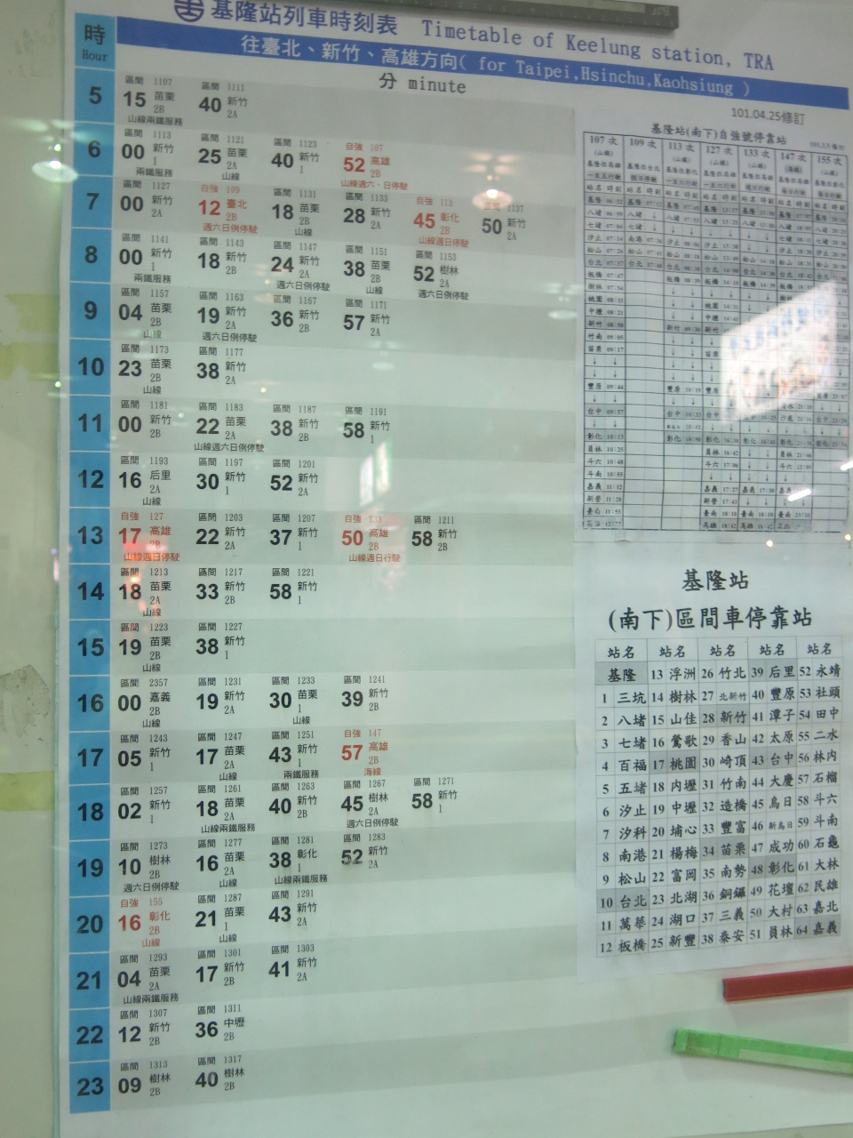台北から北方面の終着駅です。駅は新しく綺麗です。ファミリーマートの他、ヤマザキパンのベーカリーがありました。駅の近くには弁当屋さんもあったので、いろいろ買って電車に乗り込む人が多かったです。自強号は本数が少ないので事前に調べた方が良さそう。