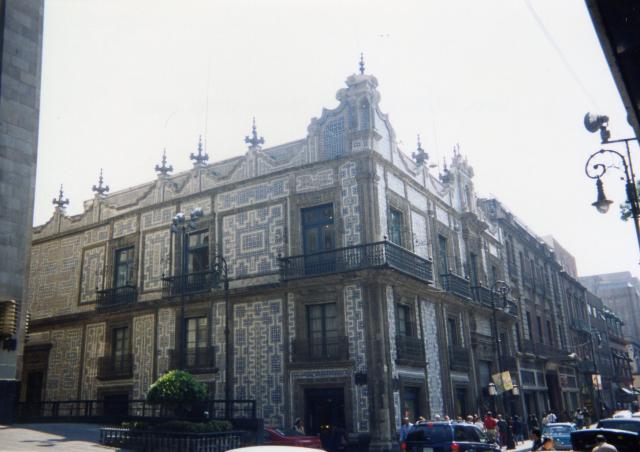メキシコシティーの中心部にあるこの建物は、シティー近郊のプエブラの街の特産品であるタラベラ焼きという、青味がかったタイルが壁面に使用されているため、青タイルの家と名付けられました。16世紀末住宅用に建築され、現在はデパートとして使用されています。