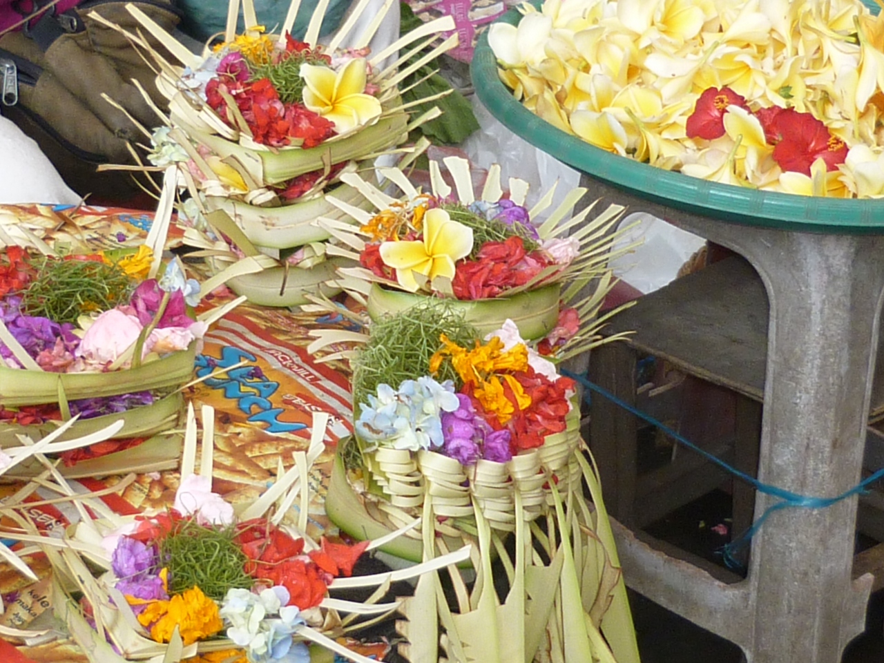 チャナン(お供え物)や食料品、雑貨、などなど、所せましと店が連なっていて、活気があります。食料品は朝5時から、土産物屋は朝8時から開くそうです。