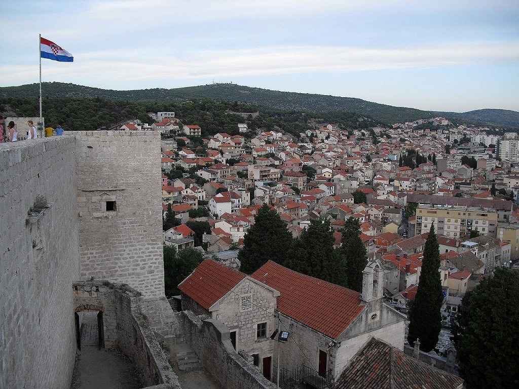 高さ70mの丘の上にあるミカエル要塞のテラスは、シベニクの旧市街とアドリア海が一望できる絶景ポイントです。