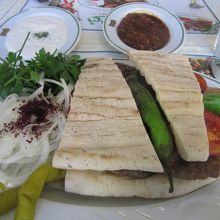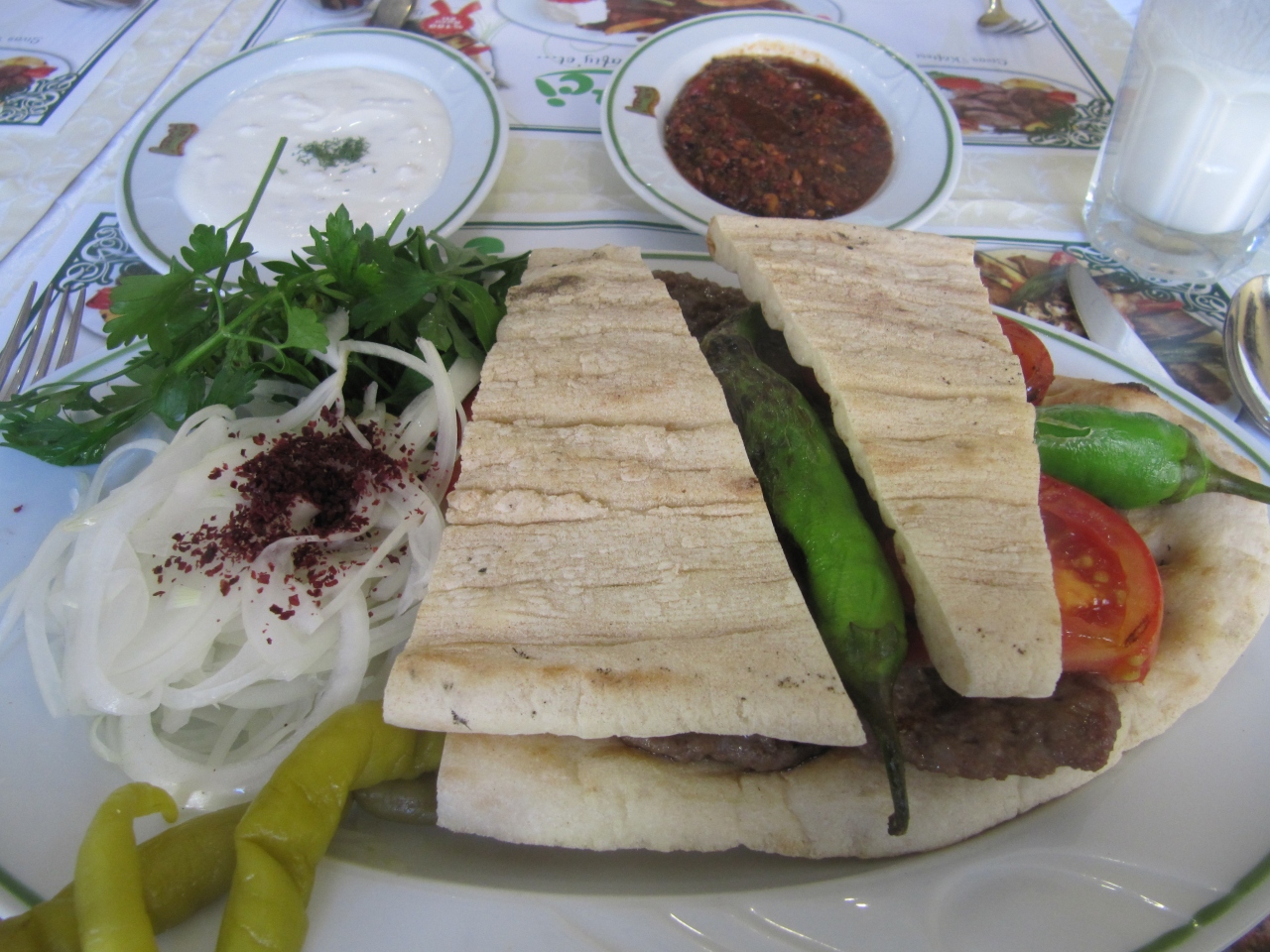 スィワスの町の名物、スィワスケバブが25TLで食べられる。ボリュームはかなりのものなのでハーフサイズで十分だったと思った。スィワスケバブはとにかく豪華だけれど、ほかのケバブと比べても結構パサパサすると思う。アイランと非常によく合う。ソースを付けて食べる。