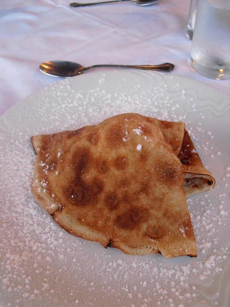 ◎パラチンケ:ドゥブロヴニク名物のデザートで、クレープのような薄いパンケーキ生地の中にバニラアイスが包まれています。生地があたたかく、アイスがとろけだします。