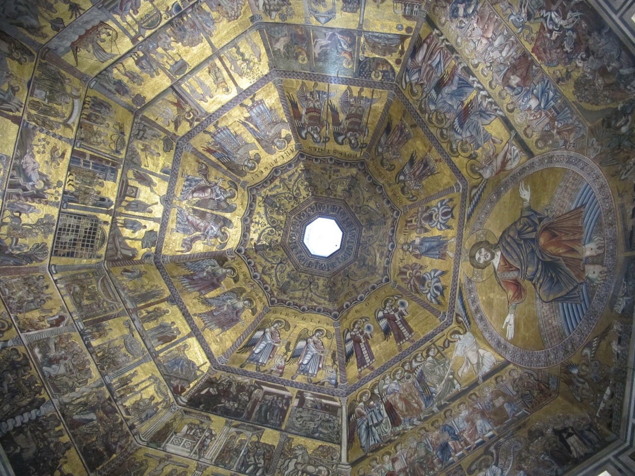 ビザンツ風の黄金のモザイクによる天井画は、晴れているととくに太陽光を反射させてモザイクが光るのでとても美しい。最後の審判や創世記などをモチーフにした天井画らしい。ドゥオモに比べずっと人が少ないので、ゆっくりとみることができる。