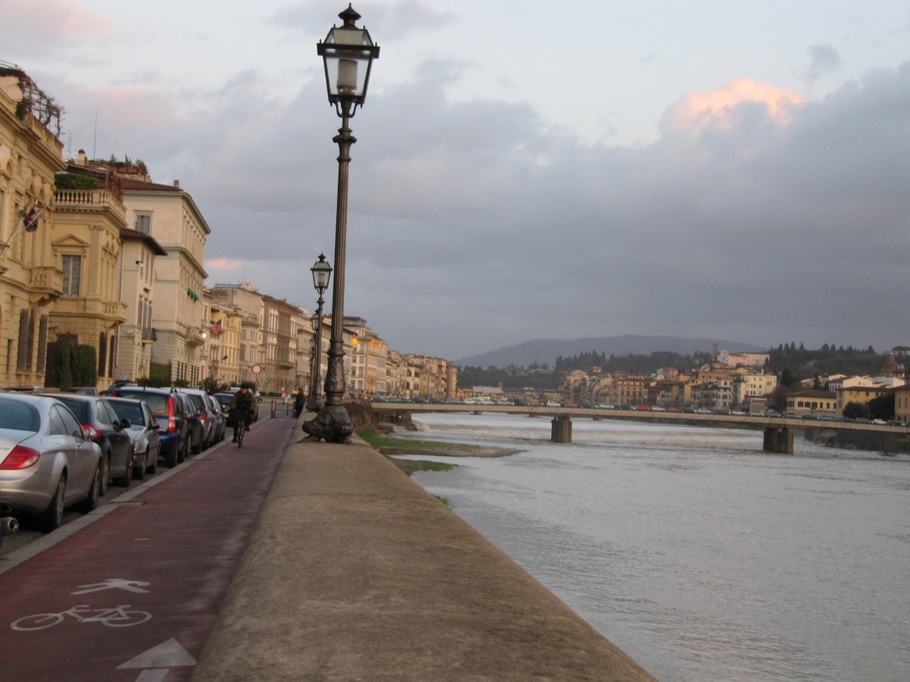 フィレンツェの中心部を流れる川。かつてこの川が氾濫して洪水を起こしたことがあったらしい。水は汚く,また水の中に入ったりなどできる雰囲気ではなかった。川ではビーバーが泳いでいたり鳥が飛来したりするので、美術品めぐりに食傷気味になったらこの川を眺めながら一息ついていた。