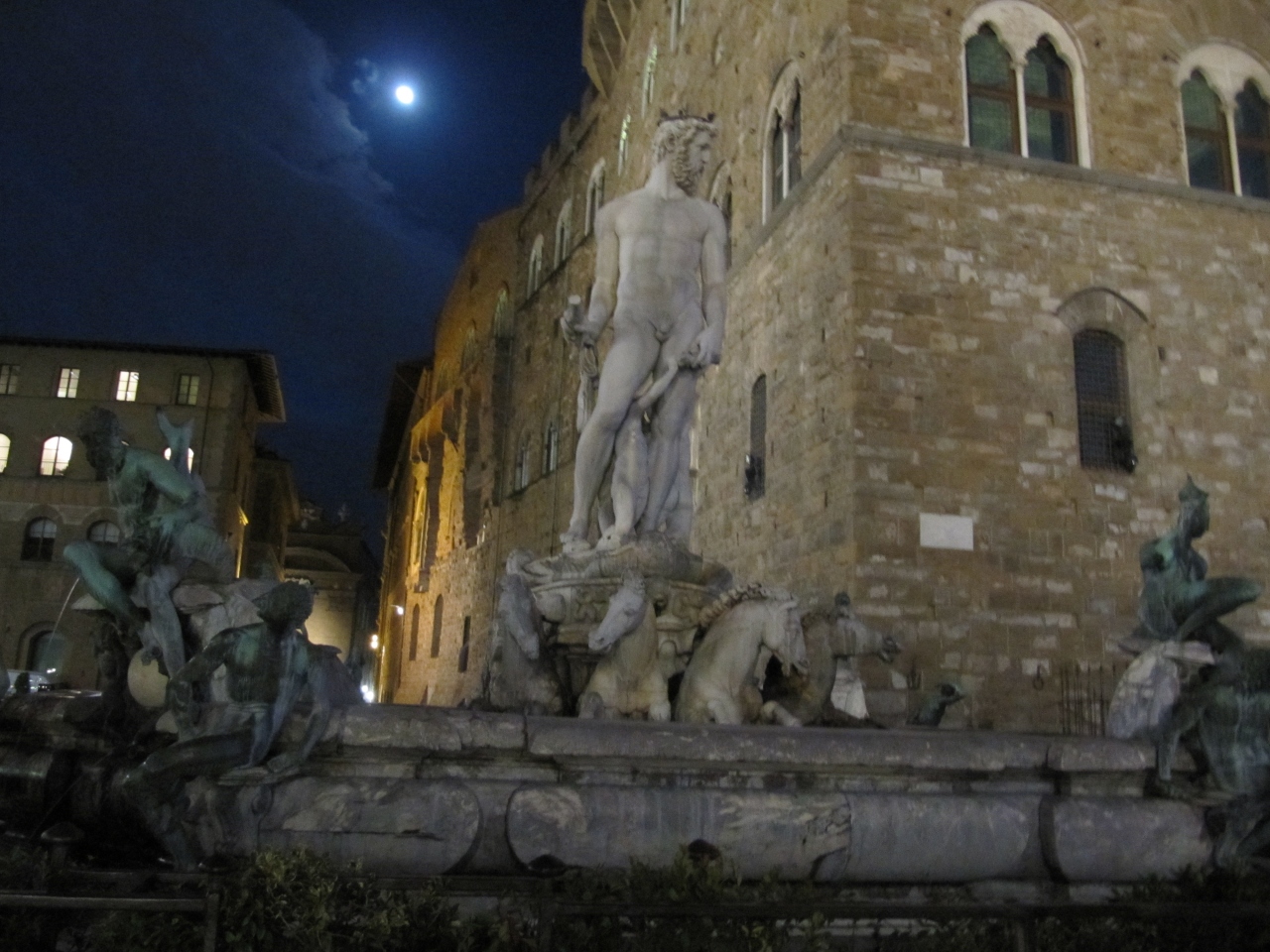 いかにもフィレンツェ,ルネサンスといった感じの噴水。水はチロチロと申し訳程度にしか出ていない。近くには丸いブロンズの敷石が埋まっており、サヴォナローラが火あぶりの刑にされたところだと言うが、どうも見つけることができなかった。